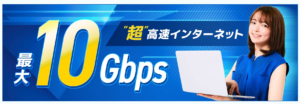• 1G回線の約10倍の最大速度